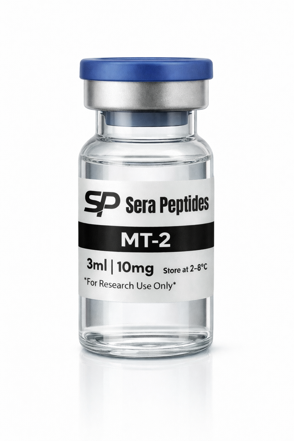 MT-2 (Melanotan II) 10mg is a high-purity, lab-tested research peptide known for its ability to activate melanocortin receptors. Extensively studied for its effects on skin pigmentation, sexual function, and appetite regulation, MT-2 is a synthetic analog of alpha-MSH with enhanced stability and biological activity.